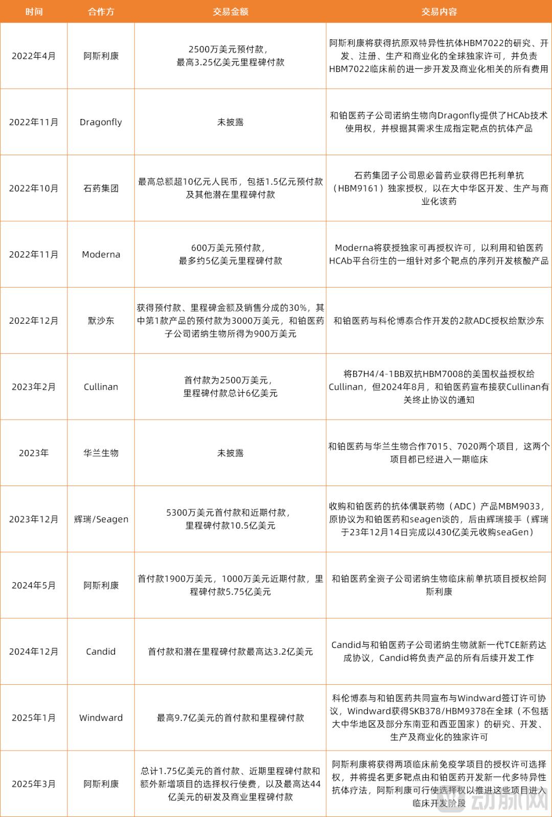 就在今年,和铂医药已经获得了两个大订单:1月份,和铂医药和科伦博泰联合宣布,就HBM9378/SKB378和Windwardward而言, Bio 达成NewCo合作,合作总额约为9.7亿美元;三月份,与白金医药宣布与阿斯利康达成战略合作,交易总额达到45.75亿美元。