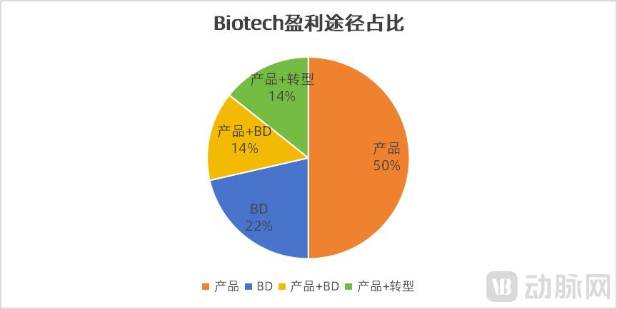 在各种公告中,当涉及到企业的盈利原因时,大多数Biotech公布的影响业绩的主要原因是核心产品的商业化、核心产业的成交量等“商品”相关词汇。在14家企业中,只有7家企业依靠商品盈利;此外,还有4家企业,其盈利原因包括商品。此外,主要依靠BD实现盈利的三家企业,其产品和技术得到了大药企和MNC的肯定,但这些商品还没有进入商业化阶段。