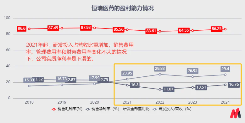 虽然恒瑞药业有传统仿制品业务支持现金流,可以支持公司持续投资创新药,但长期的R&D周期和高失败风险的堡垒仍然难以突破,会给盈利能力带来麻烦。