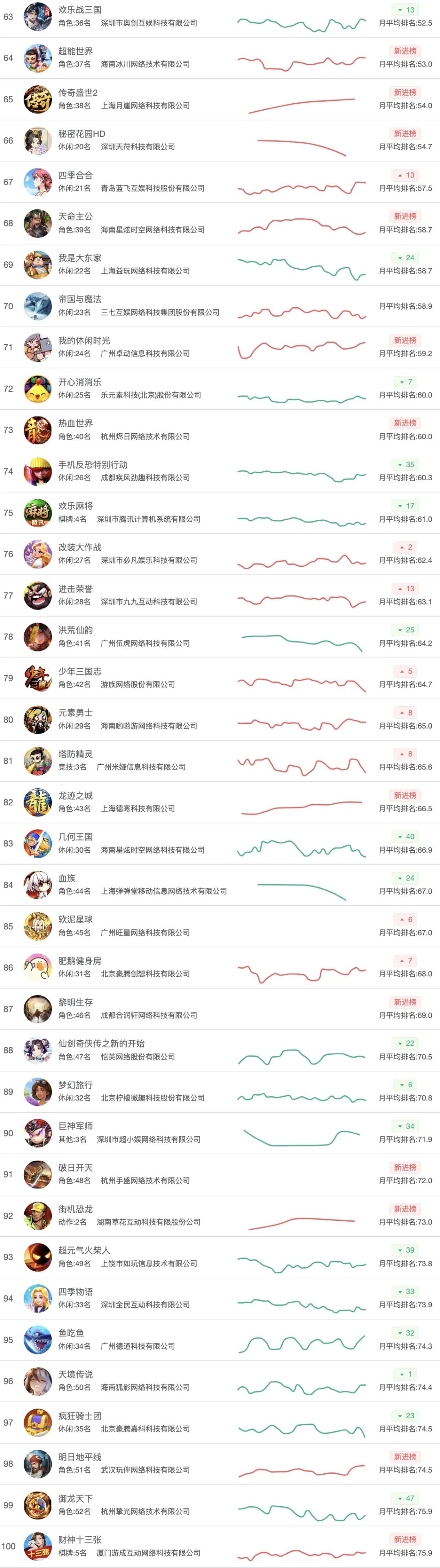 同样是这个月的新游,三七《时间大爆炸》的表现也比较突出,3月份空降月榜15名。另一家三七时间杂货店排名提升了6位,达到了第13位。