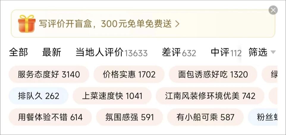 惊蛰研究所也发现,直到现在,绿茶官网上的“招牌美食”页面依然把面包诱惑放在第一位,但在公众评论中随机打开一家绿茶餐厅的评论区,“价格实惠”、“面包诱惑美味”等评价标签占据了显著的位置。