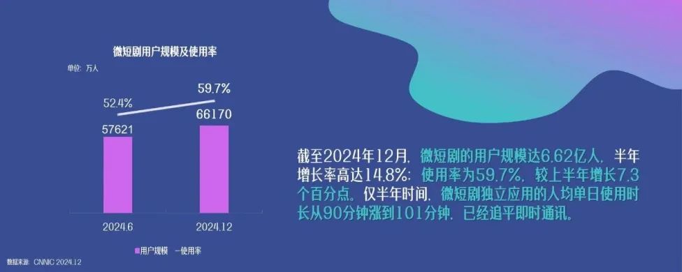 另外,在新一届视听大会上发布的《中国网络视听发展研究报告(2025)》中,kk还注意到了几个信息点,第一,短视频应用用户数量、使用时间仍然是第一位的,而微短剧用户数量迅速增加,应用时间实际上追平了即时通讯。详细信息请参见下图。