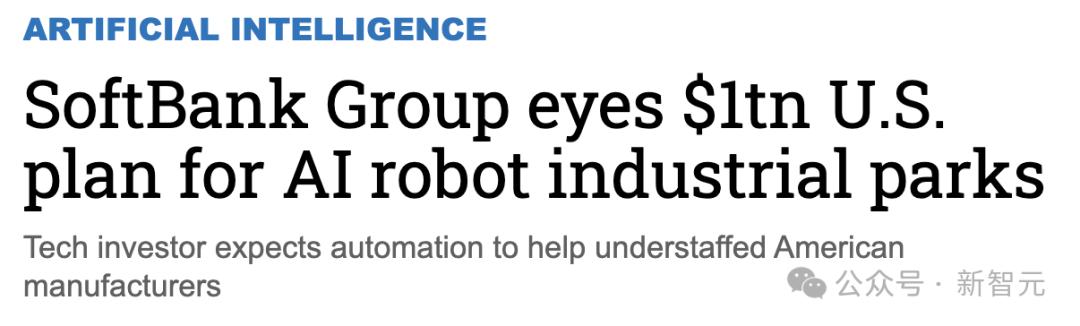 在美国,孙正义将建立一个配置AI工厂的工业区,利用人形机器人帮助制造业解决劳动力短缺问题。
