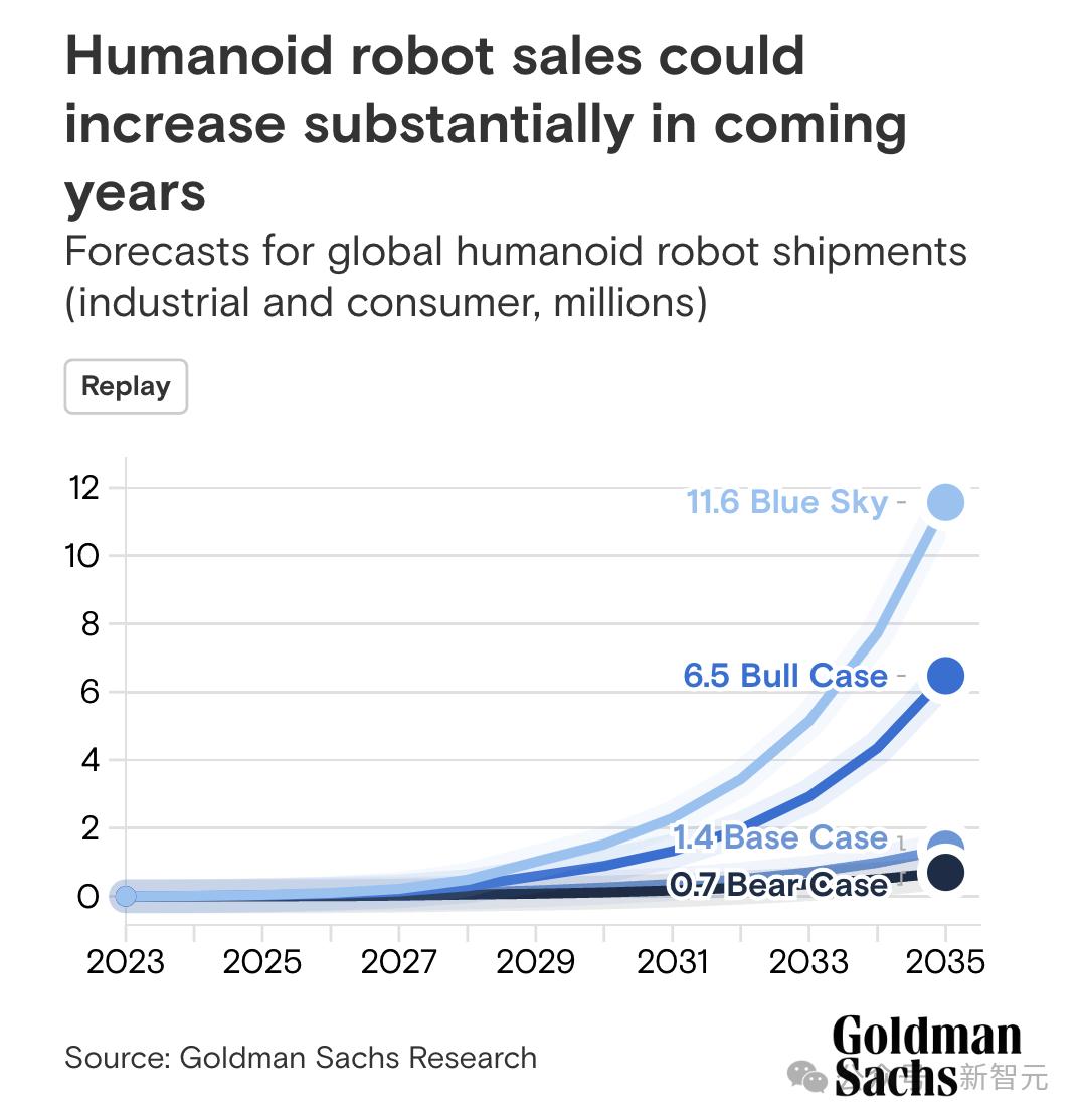 高盛预测,到2035年,人形机器人市场规模将飙升至380亿美元,增长潜力惊人。
