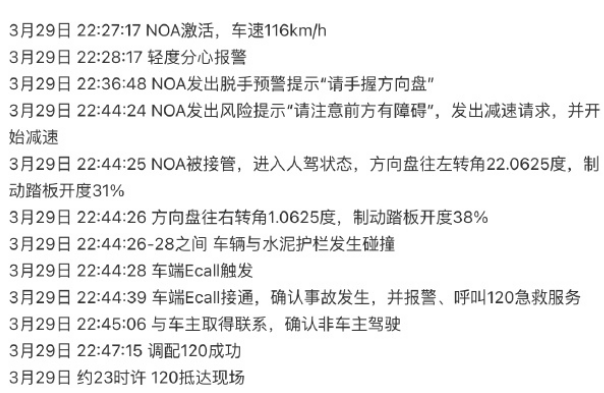 与此同时,小米公布了一份关于事故汽车行驶状况的摘要。