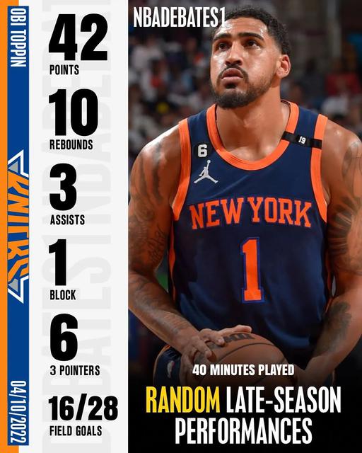 2022 年 4 月 10 每天,出场打球 40 分钟,28 投 16 中,拿下了 42 分,10 个篮板,3 次助攻,1 第二次盖帽。其中,投入 6 记住三分球。目前奥比托平效力于印第安纳步行者,他展示了自己出色的实战暴扣能力。
