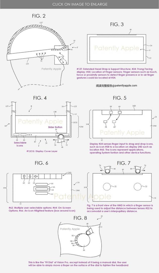 图 7-8 进一步展示传感器用于调整镜头位置等硬件设置,突出其多功能性。苹果表示,这种设计可以平衡头部显示的紧凑性和交互灵活性。