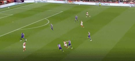第 73 赖斯中圈断球几分钟,在梅里诺得球传中,马丁内利迎球推动反击,斜塞左路,马丁内利神龙摆尾一挑,萨卡门口头球入网,2。:0!受伤后便进球,萨卡用最好的方式庆祝自己的复出;时隔 111 天再一次为阿森纳进球。与此同时,萨卡本赛季已经进球。 10 球 13 次助攻,持续 3 本赛季各项赛事进球和助攻均上双;之前做到这一点的枪手球员是 14-15 和 16-17 桑切斯这个赛季。