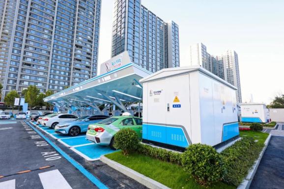 最新建成的合肥政务中心“光储充替换” 综合应用车网互动示范场景。