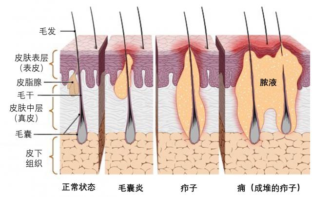 它毛囊及毛囊周围的细菌感染。根据上述定义可以看出,其病变位于皮肤毛囊及毛囊周围,引起病变的基本原因是细菌感染。