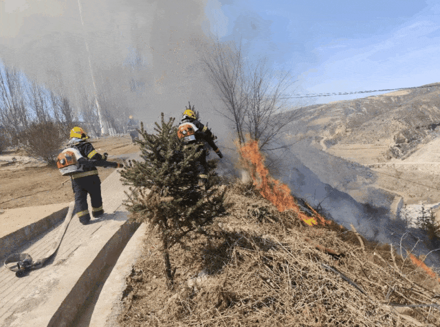 3月30日,陕西省榆林市府谷县庙沟门镇发生山火,国能神东队三道沟中队迅速前往处理。到达现场后,指挥官和战士用鼓风机和消防水枪结合地形灭火。