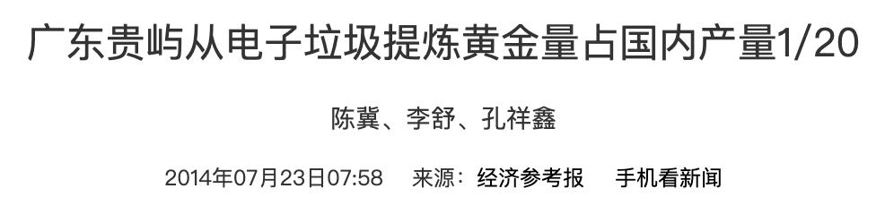 过去,贵屿镇的黄金年产量最高可达15吨,堪比一个弱国的年金产量,声称可以“影响全球黄金价格”,还有传言说这里提炼的铜曾经被提炼过。用于提炼子弹的非法商人走私出口,据说当地炼金师傅不仅灵活运用脱金液和王水的制备工艺,还可以焚烧电子垃圾后释放出来。味道可以辨别里面的颜色...