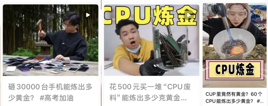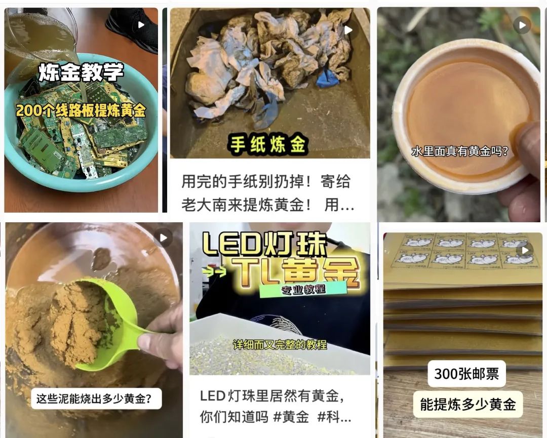 小作坊土法废物炼金术在互联网上普遍兴起,可以追溯到2021年左右。受当时全体员工热衷的“副业创收”热潮的影响,一批专业炼金师傅喊着“低成本高回报”的旗号,开始在网上分享。从镀金废料中提炼出各种黄金废料。的视频。