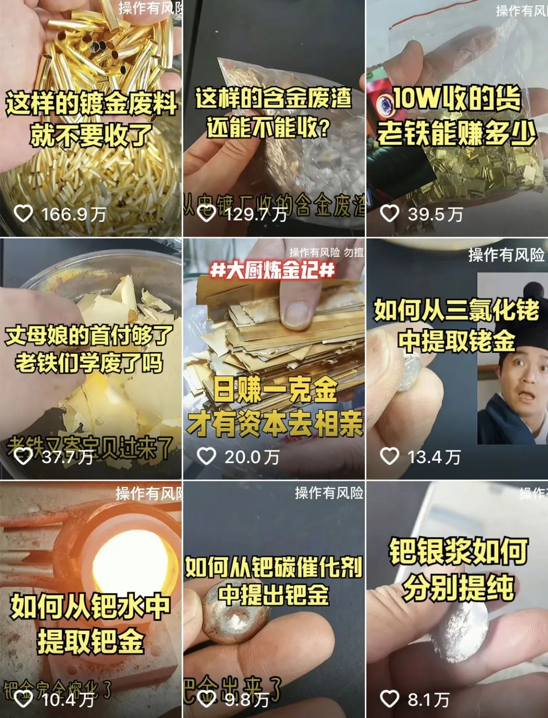看腻了锻刀比赛、驴蹄修理或者无敌液压机,不妨把目光转向一些“认可度”超高的电子榨菜,也就是最近金价暴涨。废料炼金隐藏在各行各业的小作坊里。