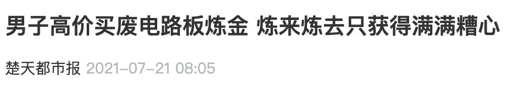 不管是硬控制年轻人的土法炼金短视频,还是贵屿镇以前的炼金盛况,都在说明废料炼金的确是一个刚需的生意,可以赚钱,同时这反映了电子垃圾回收的难题,同样也不容忽视。