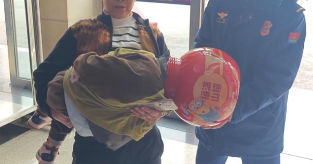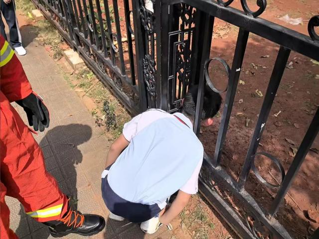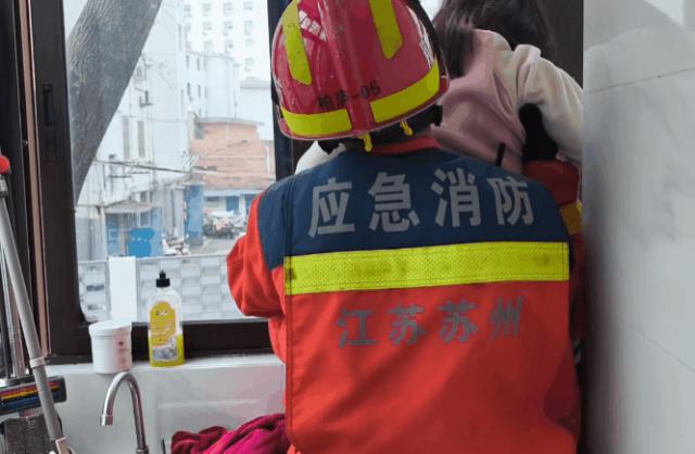 消防队员一边安抚小姑娘一边安抚小姑娘