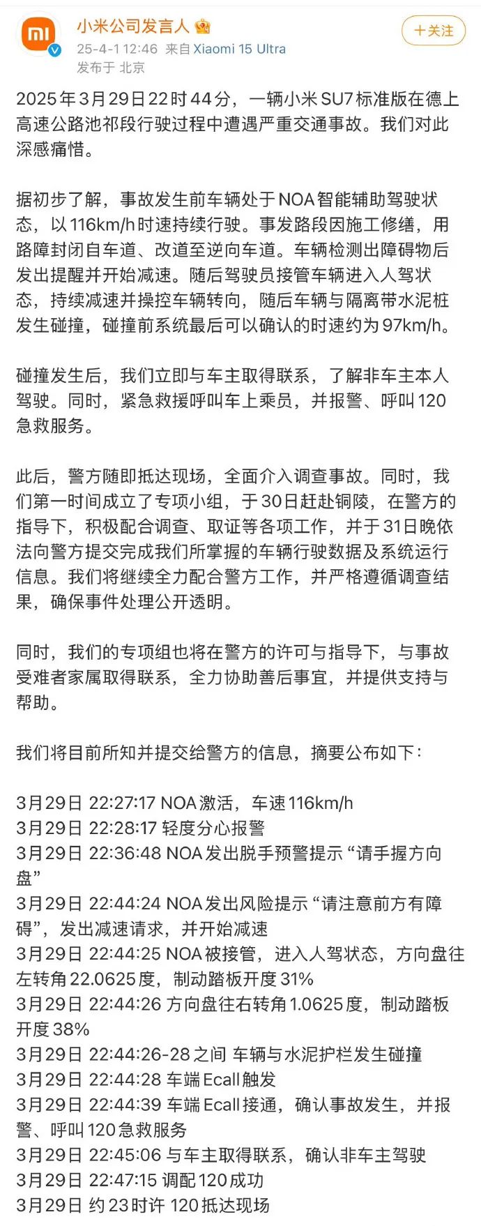 这是目前争议最大的一点,除了事故本身。