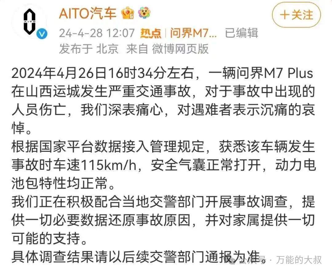 对比华为问界M7山西事故。