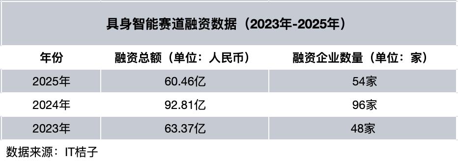 根据IT橘子数据,2025年前三个月,54家具有智能赛道的企业共获得60.46亿元融资,融资企业数量和融资规模已超过2023年和2024年总和的1/3。