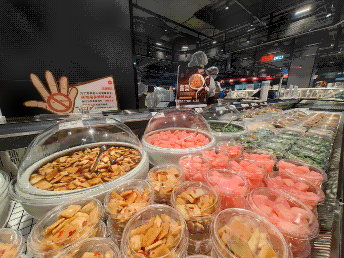 细节关怀,突出上海风格的贴心。调味区增加了一个放大镜,方便老年客户。分散的糖块标有“一斤30左右”来处理选择焦虑。水果盒按甜度标注食用顺序。海鲜柜台提供清洁和氧气服务,肉禽柜台免费提供切丝和绞肉服务。店内还设置了专用鞋套、切鱼间、易碎品包装处、海鲜包装加冰试穿凉鞋。90后顾客小赵不禁感慨:“这些细节比网上名人店更贴心!”。