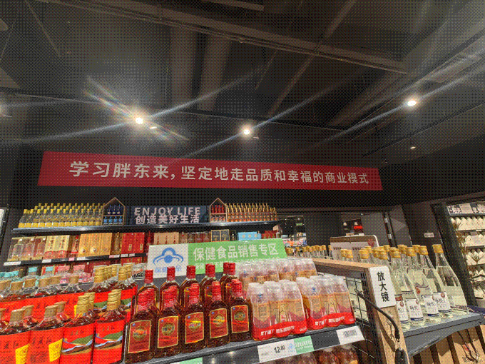 据悉,浦江万达店改革后,商品更换率达到70%,累计下架5762支单品,并新增2665支商品,进口产品占比提升至20%,烘焙、熟食等新鲜食物的比例从5%跃升到20%,商品结构接近胖东来标准80%。店内聚焦“科学饮食” 精致生活”,打造“全球精选” 特色矩阵“上海味道”。