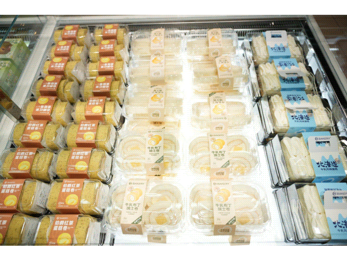 在熟食烘焙方面,提供多种网红爆款和老上海情怀商品。熟食区推出了“胖东来同款”小香肠、秘制牛肉条、韩国炸鸡、烤鸭,新推出了燕子百味鸡。在明朝的厨房里,顾客可以看到员工的操作行为,创造出更加放心的消费场景。