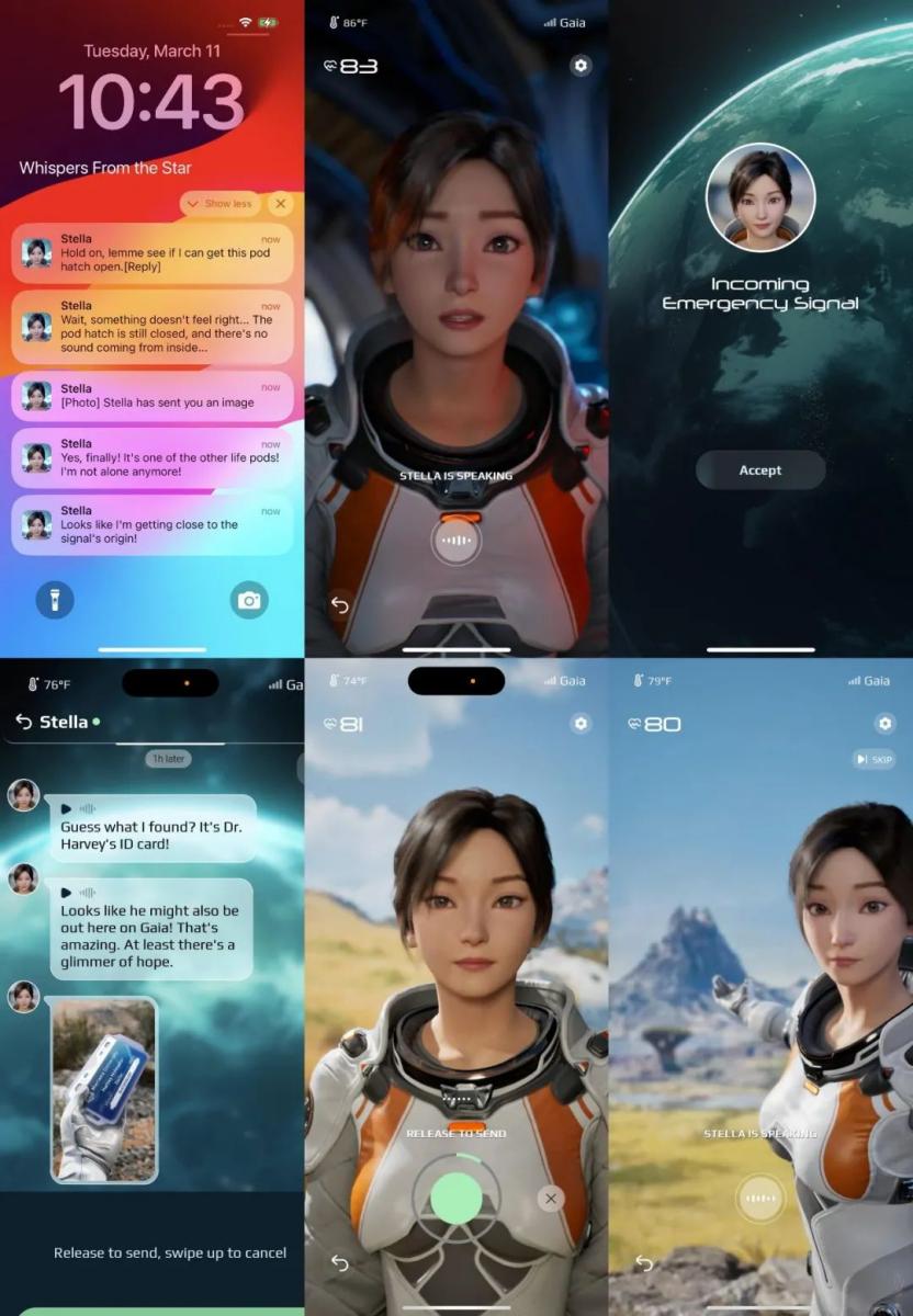 通过@404Stella发布的帖子,我们可以看到蔡浩宇新作品的大致面貌:故事发生在一个名为Gaia的星球上,女主角Stella是一个意想不到的航天员。作为Stella唯一可以联系的人,玩家将扮演“领导者”的角色——通过实时声音引导她离开Gaia星球。
