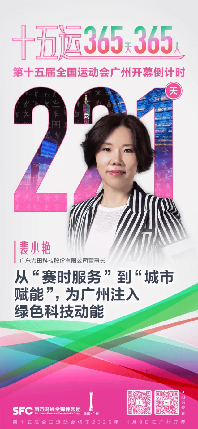 第十五届全国运动会将在 2025 年 11 月份在粤港澳三地举行。它是一项体育赛事,也是促进全民健身、促进体育事业高质量发展的重要机遇。在十五运会开幕倒计时一周年之际,南方财经全媒体集团与十五运会、残特奥会广州赛区执委会推出“十五运会” 365 天 365 “人”栏目聚焦选手、企业家、专家学者、体育爱好者、公众的全运故事和全运期待,让更多人了解和支持十五运,生动展现中国的体育精神、城市活力和文化魅力。