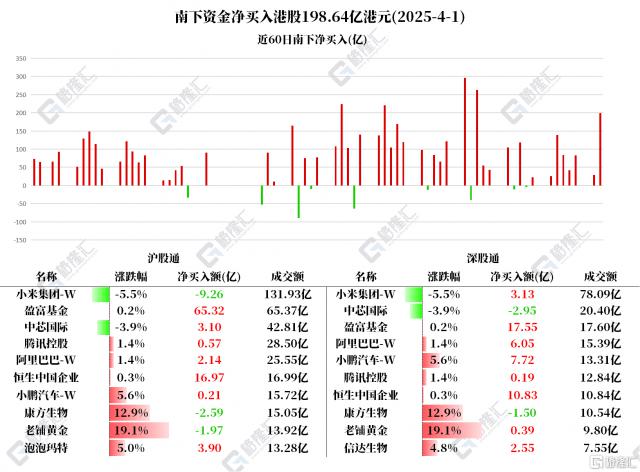 8、南下资金净买入港股 198.6 一亿港元,加仓阿里,小鹏,减持小米;