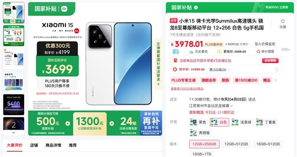 国家补价从3699元开始!小米15/Pro全部降价:最高降价500元