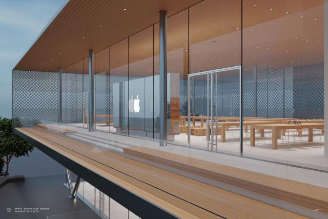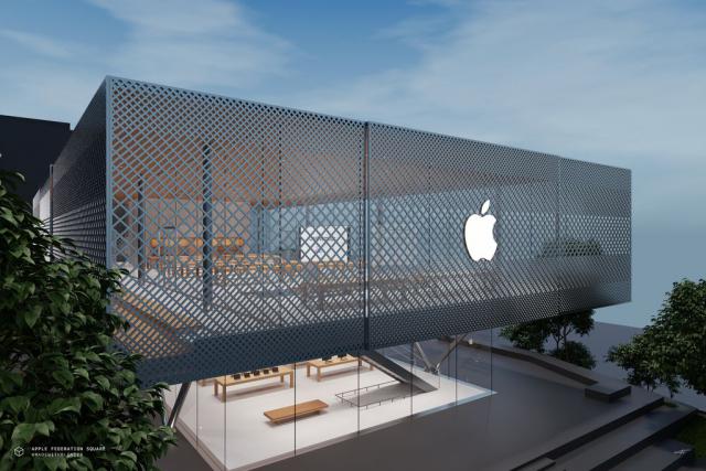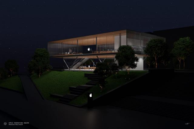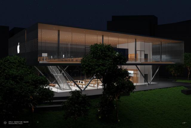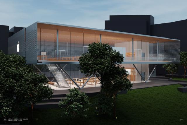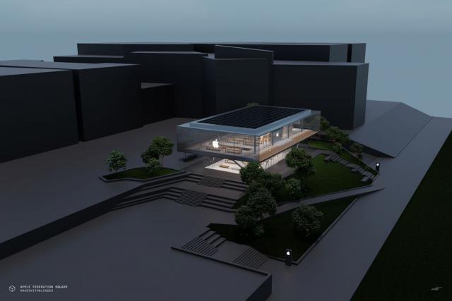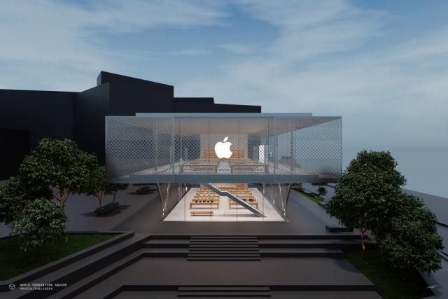 IT 世家 4 月 3 日消息,因人民反对,苹果于 2019 2008年取消在澳大利亚墨尔本联邦广场开设旗舰店的计划。时隔 6 年,设计师 Filip Chudzinski 根据 Foster Partners 设计提案,用 3D 渲染展示了苹果旗舰店未实现的外观,包括多层展厅设计和现代元素。