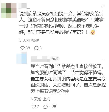 但是不喜欢的人也有各种各样的槽点,比如吴彦祖的戏份太少,互动不够深入,教学内容时间少, AI 陪练并非真正的自由对话。