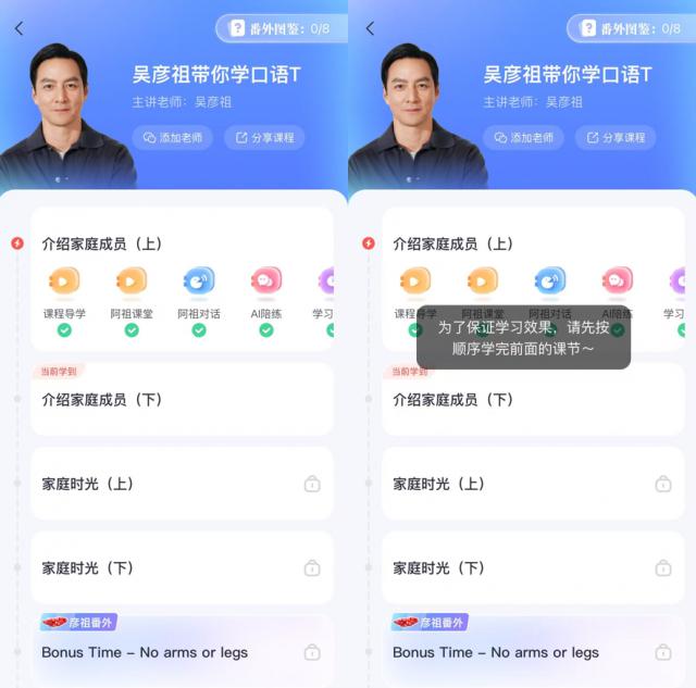 虽然这是阿祖的课程,吴彦祖的宣传无处不在,但实际上,除了明星的流量和噱头的加持,如果我们随意换一个英语老师来谈这门课,会对内容产生多大的影响?
