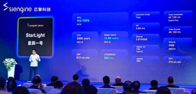 星星一号是基于它 7nm 制程工艺,CPU 算率为 250KDMIPS,NPU 算率高达 基于多芯片协同的512TOPS,多芯片组最具成本效益 高性能集成2048TOPS VACC 与 ISP,内置 ASIL-D 最大支持功能安全岛 20 多路激光雷达、摄像头、mm波雷达、路高像素摄像头、对传感器前后结合的支持,可以满足 L2 到 L4 级别自动驾驶需求。
