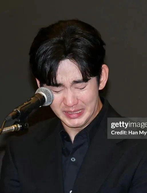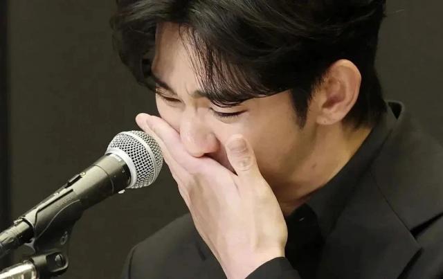 金秀贤在新闻发布会上看起来很痛苦,在演讲过程中哽咽了好几次。