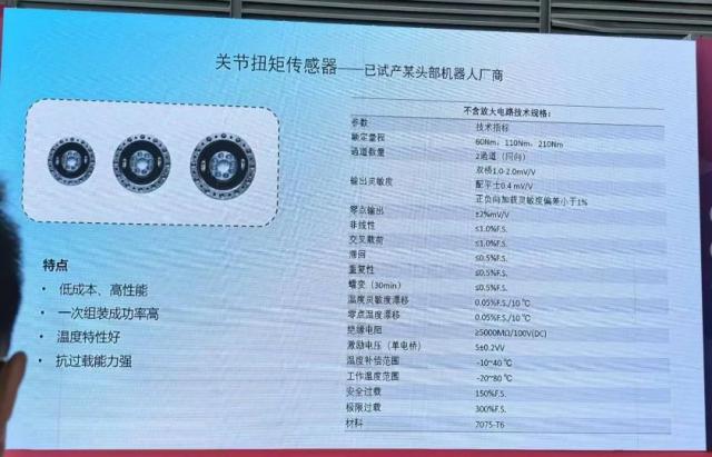 扭矩传感器的三个关键指标是精度、分辨率和动态响应特性。作为力矩传感器,关节扭矩传感器必须在这些指标上有所突破。这次纽迪瑞推出了一个新的关节扭矩传感器。曾华表示,该产品是一种原点测量方案,其特点是成本低,性能高,一次装配成功率高。高灵敏达到 高精度的GF20 0.5Nm,集成式紧凑型电动减速器实现了一体化设计,目前已试产某头部机器人制造商。