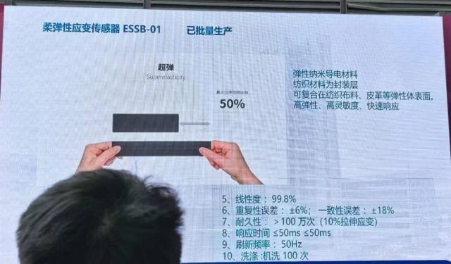 另一种产品是柔弹性应变传感器 ESSB-01,已批量生产。商品能达到 50% 弹性变形,线性变形 刷新频率达到99.8% 50Hz,可支持机洗。 100 次左右。何涛透露,汉威科技开发的软人机交互智能手套系统已量产。这款智能手套将弹性应变传感器和布料制成 / 硅集成,用于人机交互,机器人灵巧的手握控制,手语系统等场景。