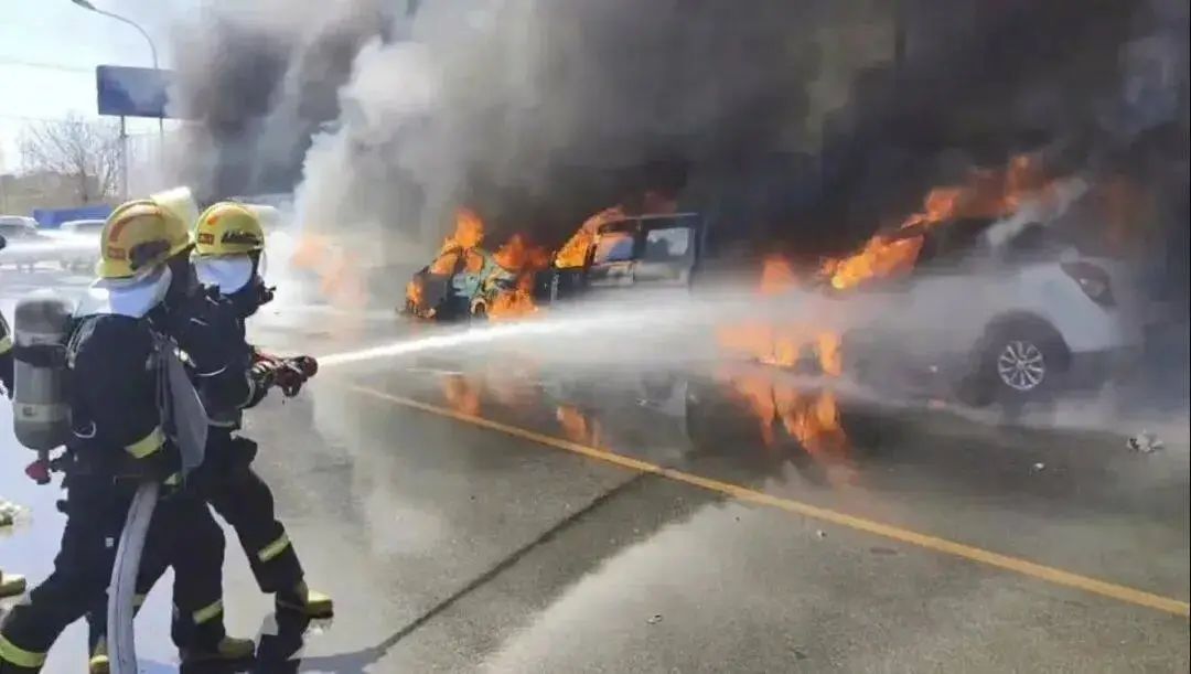3月30日中午,朝阳区嘉创路与无名路交叉口南侧发生火灾,路边停放的多辆车燃烧剧烈,烟雾弥漫。朝阳区消防救援支队接到119指挥中心的调度命令后,立即派出消防救援力量进行处理,同时派出附近村庄和社会单位的微型消防站,携带消防设备赶赴现场进行警示。消防救援人员到达现场后,迅速出水枪彻底灭火。