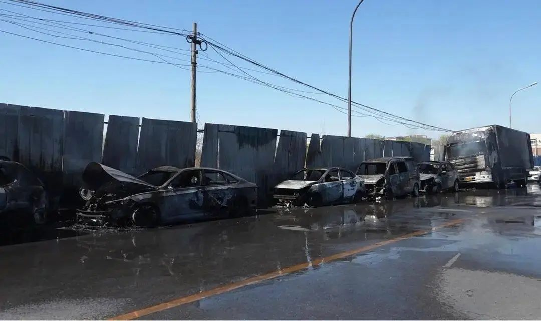 根据统计,此次火灾事故共造成7辆机动车被烧毁,2辆车被烧毁,无人被困伤亡。