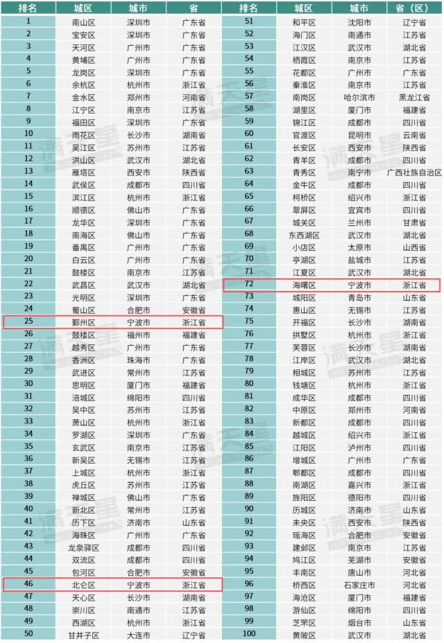 在宁波上榜的分别是嵊州区(第一名) 25 名)、北仑区(第 46 名)、海曙区(第 72 名称),排名各自比上一年提高。 2 位、3 位、1 位。