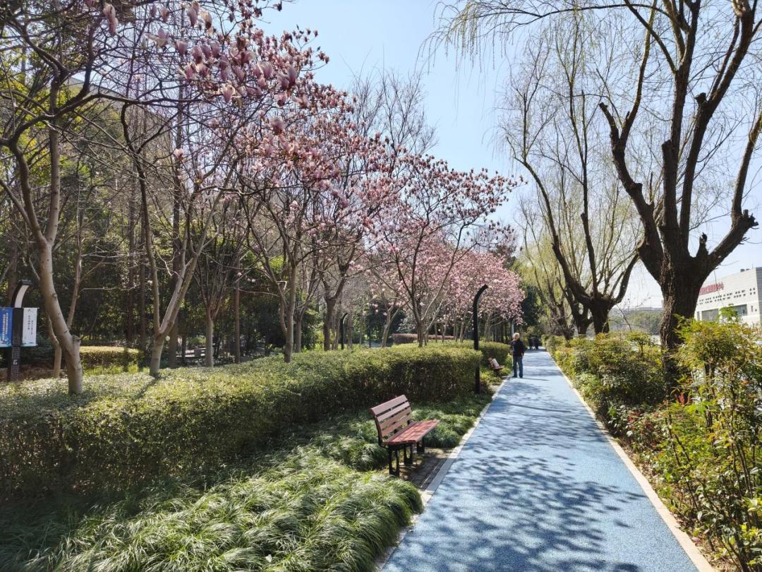 漫步在大街小巷,到处都是鲜花盛开的景象。樱花如雪,纷纷飘落,仿佛为大地铺上了一层梦幻般的毯子;美女梅楚楚,艳丽的暗紫色花瓣在枝头颤抖,就像美女微微垂下的粉腮,释放出迷人的魅力。微风吹过,带来阵阵花香,沁人心脾,让人仿佛置身于天堂。康宁绿化中的金色油菜花、海藻岸边的橙色松果菊、核心公园里的粉色紫荆花,各种桃花盛开,点缀着寺庙的每一个角落。居民在这里亲近自然,享受春天的颜色,享受桃花带来的美好时光。