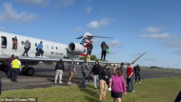 现场视频显示,飞机停在跑道上后,部分乘客通过机翼上方的应急出口撤离,爬到机翼边缘,从几英尺高度跳到路上。