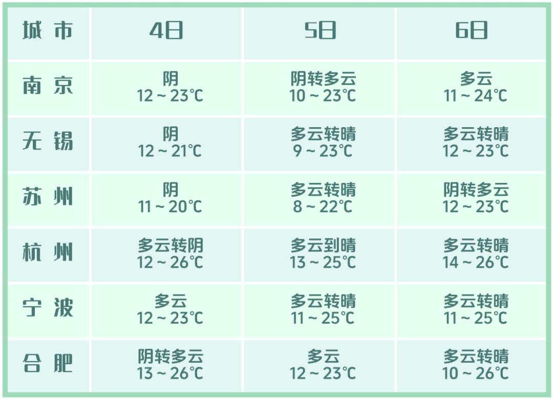 由于西北高空气流控制,清明节假日期间长三角地区多为多云天气,温度较稳定。