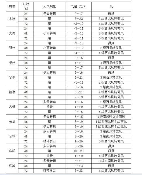 明天白天到晚上:全省多云晴天,有4-6级、7-8级及以上西北风。最高气温:北部和中南部山区9~16℃,中南部其他地区16℃~23℃;最低温度:北部和中南山区-7~0℃,中南部其他地区00℃~6℃。