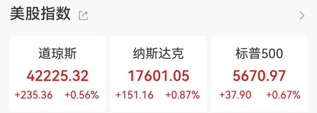 昨晚,美股市场低开高走,道指开盘下跌0.8%,收盘上涨0.56%。;开盘后,纳指一度下跌超过1.5%,收盘上涨0.87%。;标准普尔500从跌幅超过1%上升到0.67%。