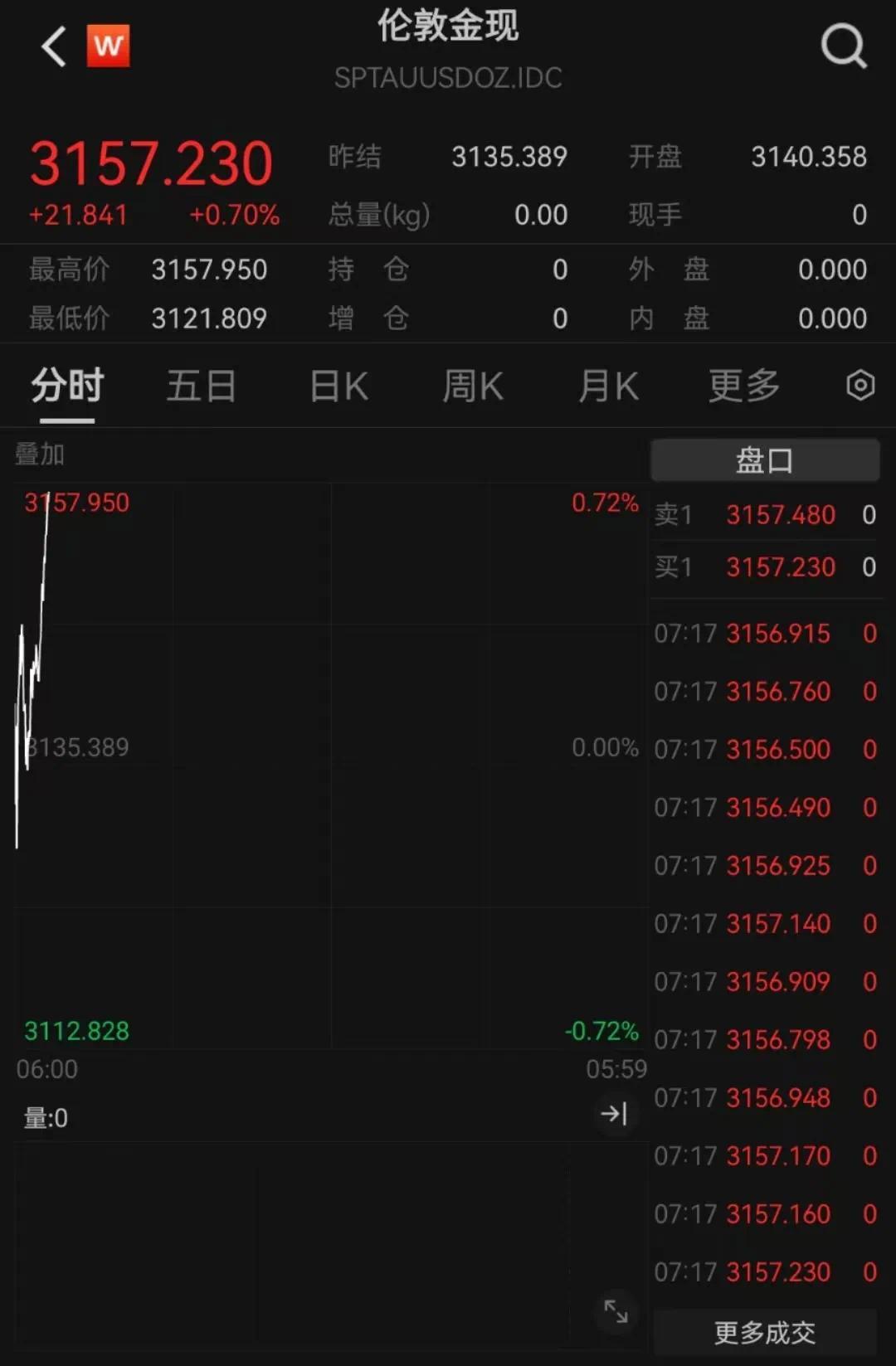 黄金不受“相等关税”的影响。在避险情绪的影响下,国际黄金价格再次上涨,伦敦黄金现货触及3157.95美元/盎司,再创历史新高,上涨约0.7%。;在3170美元/盎司,COMEX黄金。