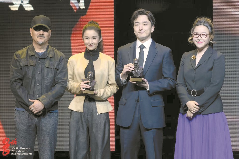 昨晚,u2003u2003第26届佐临戏剧艺术奖颁发,贺坪(右二)和刘晓靓(左二)获得最佳男女主角奖。 王犁摄