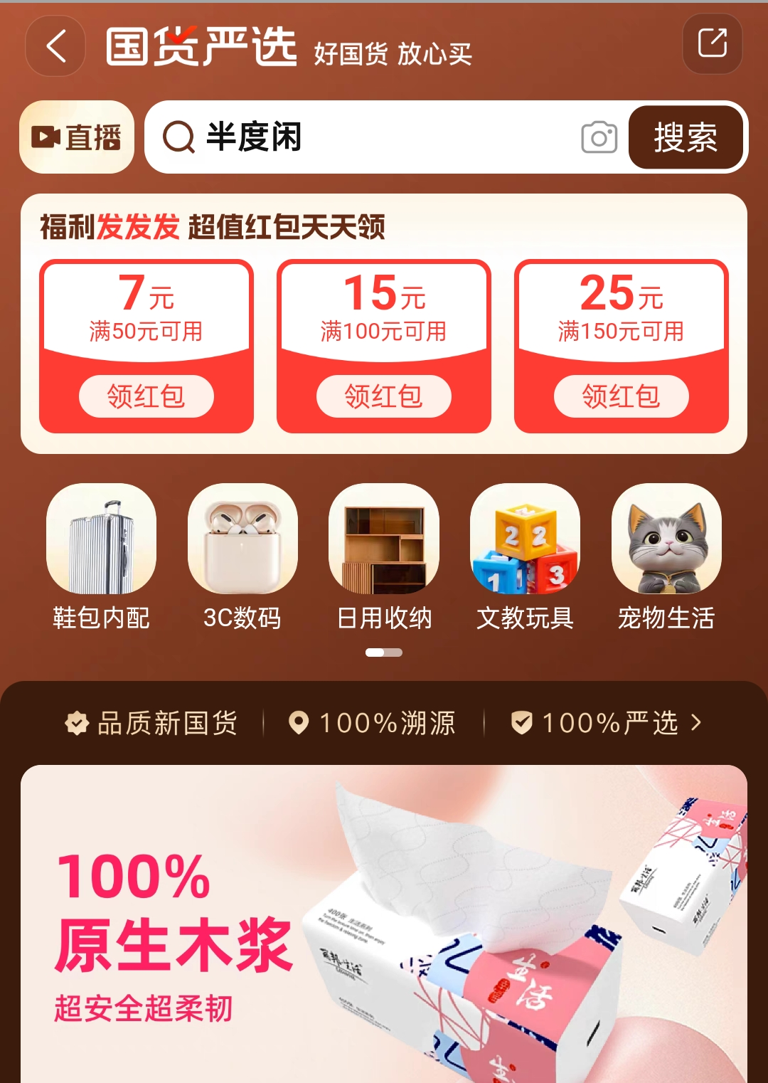 木易进入淘宝中的“国货严格选择”,其中专区定位为“好国货,放心购买”,还打出了质量好的新国货、100%追溯、100%严格选择的字眼。而且国货严格选择中的所有产品都享有正品和质量保证,假货一赔十。