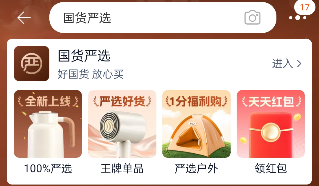 国内产品精选提供的产品种类繁多,涵盖个人护理、饮料和茶、运动室外设备、汽车配件、鞋包和内衣、日常储物用品、宠物用品、家用电器、生鲜食品和厨房用品等16大类。,基本上可以满足用户日常生活的各个方面的需求。