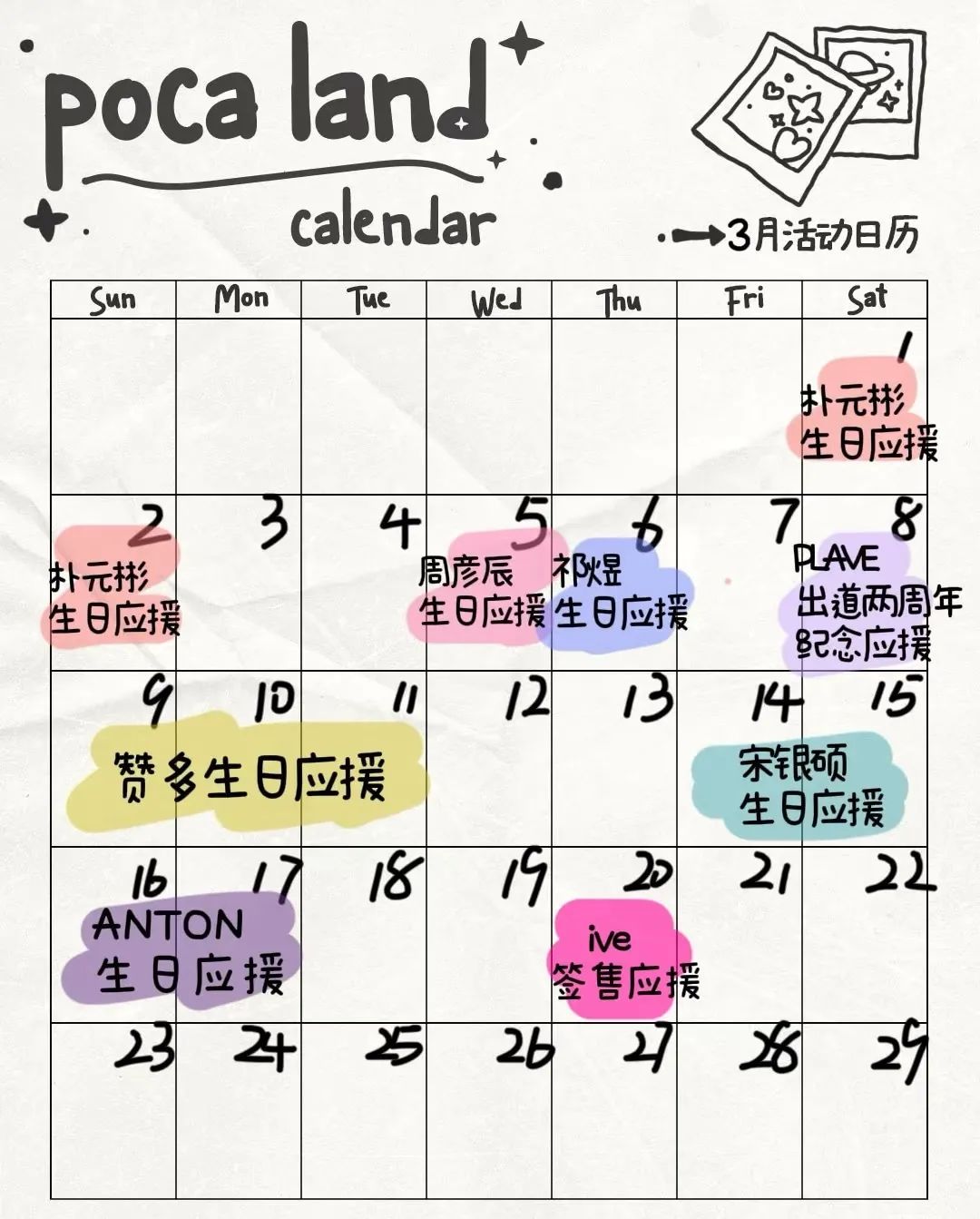 三月份的Pocaland活动日历|来源:商店小红书